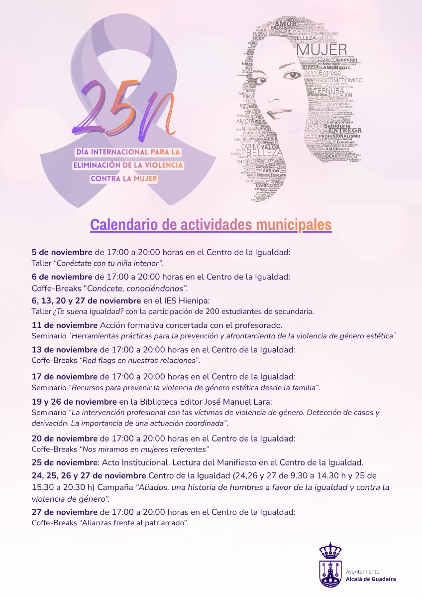 Alcalá celebra una amplia programación para conmemorar el 25N, Día Internacional para la Eliminación de la Violencia contra la Mujer.