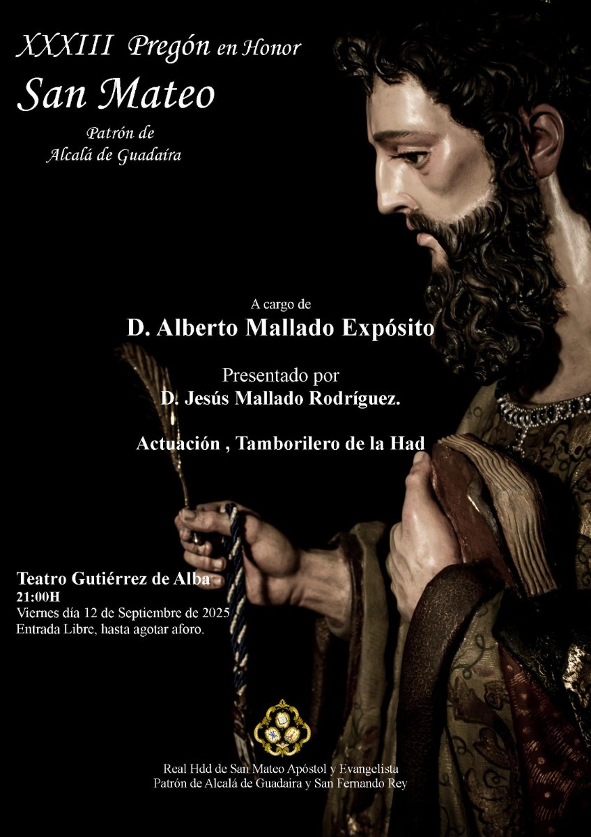 Este año y mes de septiembre se convierten en momentos muy emotivos para la hermandad de San Mateo, Patrón de Alcalá que celebra el 30 aniversario de la aprobación canónica de la hermandad.
