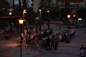 Más de cincuenta personas de distintas edades se han concentrado en el parque para participar en la cita que tenía su hora de inicio a las 21 horas. Allí les ha acompañado el concejal de Participación José Antonio Montero.