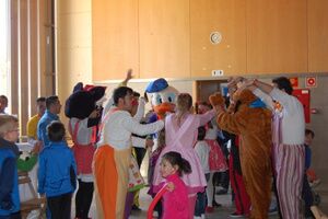 La caseta ha estado llena de familias que han querido participar del encuentro en el que los pequeños han disfrutado de los personajes de Disney gracias a la colaboración del grupo joven de la Hermandad del Soberano Poder, así como de un castillo hinchable, karaoke, y talleres de juegos tradicionales, dibujo, pintura de caras, alimentación saludable, etcétera.
