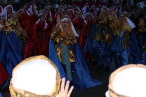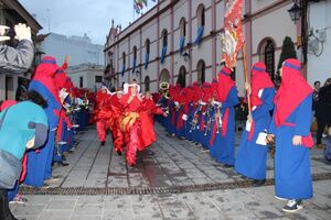 Desde las 18.00 horas de la tarde, una comitiva formada por los propios Heraldos Reales y una corte de beduinos ha partido con música y en pasacalles desde la Plaza del Duque por las céntricas calles Ntra. Sra. del Águila, La Plazuela y Mairena para llegar hasta la Plaza del Barrero, donde había organizada una fiesta infantil con payasos, pitufos, regalos, sorpresas y golosinas.