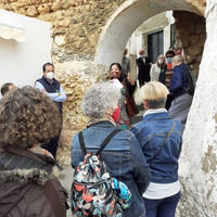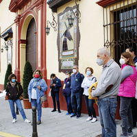 La ruta ha llevado a este grupo de visitantes (menor que otros años por la prevención ante el COVID) tanto al Centro San Miguel, instalación municipal restaurada como centro cultural del barrio y motor dinamizador del flamenco como vía turística, como a la calle Arrabal y la peña flamenca del barrio donde literalmente se siguen sus pasos.