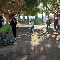 Los talleres se han distribuido en seis espacios diferentes del Parque Centro en forma de circuito por el que han ido pasando y disfrutando todos los participantes desde el taller de flamenco, zumba y DJ, otro de tiro con arco, un tercero de futbito, otro un parchís gigante, otro de petanca y un espacio con palomitas y algodón de azúcar.