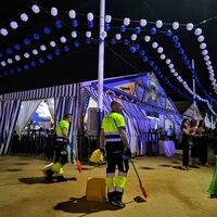 En el mismo recinto, además de las baldeadoras y barredoras, habrá personal a pie. Se hará especial incidencia en la limpieza del albero, en la instalación de papeleras adicionales para facilitar la disposición de residuos, y en la recogida de excrementos de caballos .
