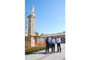 En la Plaza Madre de Dios los operarios realizan estos días mejoras con el pintado de las barandillas y los bancos, arreglo de los arriates y la reparación completa del pedestal y la imagen de la Purísima en la zona central de la plaza.
