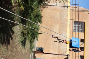 Castillos hinchables, globos de agua, tirolina, carreras de sacos...han hecho las delicias de los menores que participan en gimnasia rítmica, acrobática, de psicomotricidad, kárate, taekwondo, pádel, tenis y atletismo