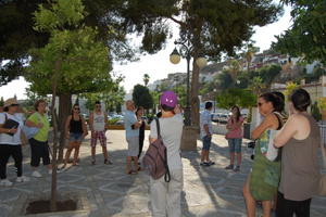 La visita comenzó a las 19 horas de la tarde desde la Plaza del Perejil hasta la fortaleza, y en ella se llevó a la veintena de visitantes a conocer la historia del cerro del Castillo: el origen en torno a la fortificación islámica, el desarrollo de la villa medieval y el arrabal de San Miguel. También el abandono de los siglos XVIII y XIX y la recuperación en el siglo XX : el nacimiento del Barrio de Castillo, el Tren de los Panaderos, el Perejil, las cuevas, el flamenco, la figura de Joaquín el de la Paula, y los proyectos de restauración integral de la zona recogidos en el Plan Urban.