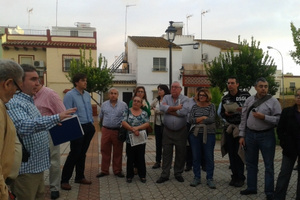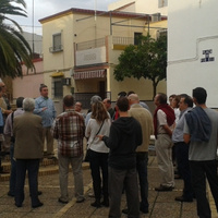 El paseo ha recorrido los enclaves y plazas más características de esta barriada de mediados de los años 70, comenzando por la plaza de los Poetas Andaluces, junto a la parroquia de San Mateo, en la que los guías han explicado el contexto histórico y sociopolítico del proyecto de la Cooperativa de Pablo VI.