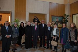 La alcaldesa de la ciudad, Ana Isabel Jiménez, ha recibido al hermano mayor, Joaquín Barello, y miembros de la Junta de Gobierno para hacerle entrega de este obsequio con motivo del 40 Aniversario de la Hermandad, y en agradecimiento a su labor