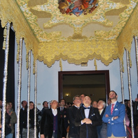 A continuación y tras un acto sencillo todos los asistentes pasaron al Salón Talavera para inaugurar y contemplar el palio que aparece sostenido por los varales de la Virgen y con las caídas estrenadas en 2012.