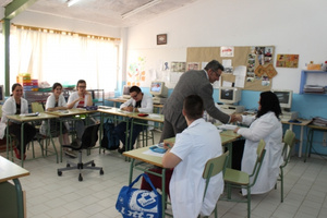Tras la visita por las diferentes aulas, las autoridades han inaugurado las dos pistas de petanca y observado cómo los alumnos y profesores han echado una partida en colaboración con el Club de Petanca de Alcalá de Guadaíra, que han enseñado esta práctica deportiva a los alumnos dentro del programa de difusión de este deporte entre escolares.