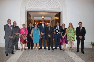 La alcaldesa de la ciudad, Ana Isabel Jiménez, ha recibido al hermano mayor, Joaquín Barello, y miembros de la Junta de Gobierno para hacerle entrega de este obsequio con motivo del 40 Aniversario de la Hermandad, y en agradecimiento a su labor