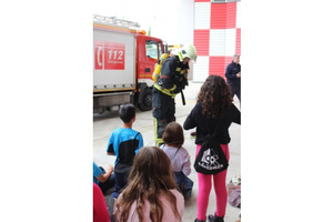 Los niños también han tenido la posibilidad de conocer los vehículos, herramientas y vestuario para la intervención de los profesionales, e incluso probarse algunos.