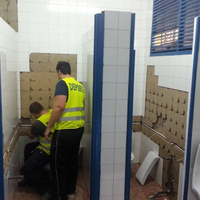 Destacan la reforma de aseos públicos del Pabellón Plácido Fernández Viagas al que se le está realizando una completa obra de albañilería con sustitución de azulejos, tomas de agua, piezas sanitarias, etc., así como de vestuarios de los deportistas, con pintura y restauración del mobiliario.