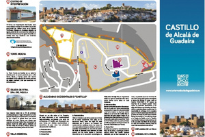 En cuanto al A3 que Turismo ha editado sobre el Castillo de Alcalá, éste viene realizado en un papel sencillo a color con dos planos de la fortaleza, uno que incluye la explanada del Águila y cuyo seguimiento en números lleva al visitante a saber ubicar el CIC, la Torre Mocha, las alcazabas occidentales, la villa medieval y la iglesia de Ntra. Sra. Del Águila. La otra carilla cuenta con un plano específico de la fortaleza en sí y sugiere al visitante un recorrido en orden cronológico que se explica con detalles en un lateral del mismo y en el que se deja unas líneas en blanco para tomar apuntes de interés.