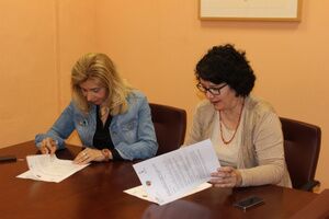 La firma del acuerdo entre ambas instituciones, que ha contado con la presencia del alcalde, ha corrido a cargo de la responsable del Auditorio y Presidenta de la Sociedad Innovar en Alcalá, María José Borge, y de la presidenta de la Orquesta Bética, Inmaculada Hernández.