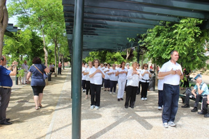 Durante esta mañana en el Parque Centro de la Ciudad se ha ofrecido un desayuno saludable de convivencia y la actividad ‘Danza del corazón’ en la que han participado todos los grupos del programa de ejercicios de la Asociación de Fibromialgia, dirigida por Miguel López Ruiz, técnico de la asociación y responsable del Programa de Reeducación Sensitiva.