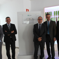 El alcalde de Alcalá de Guadaíra, Antonio Gutiérrez Limones, junto al Presidente y Director general de Verallia, Jean Pierre Floris, el Director General de esta empresa para España y Portugal, Enmanuel Auberger, el responsable de la Planta de Verallia en Alcalá, Mario Mata y el Director General de la Agencia Idea, Antonio Galán, ha presidido hoy la inauguración de la ampliación de esta empresa fabricante de envases de vidrio para bebidas y alimentación tras una inversión de 30 millones de euros en la modernización de su planta de Alcalá de Guadaíra.