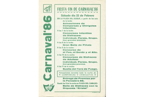No obstante, los preparativos de la festividad comenzaron en el último cuarto del año anterior con el concurso del Cartel de Carnaval que, con un premio de 40.000 pesetas, debía ajustarse a unas medidas de formato de 70x50 cm, y ser presentados con fecha límite de 30 de diciembre de 1985.
