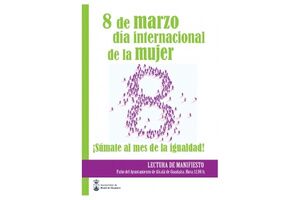 El día 8 de marzo se leerá un manifiesto a las 12:00 horas en el patio del Ayuntamiento por parte de los talleres de teatro social “La Guita” y “La Luna” de la Asociación de Fibromialgia de Alcalá, todo bajo la coordinación de Magdalena Alfaro. Al finalizar la lectura del manifiesto, actuará la soprano Carmen Serrano acompañada del guitarrista Marcelo de la Puebla.