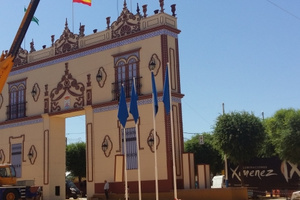 Alcalá de Guadaíra inicia su Feria que cumple 30 años en el recinto de San Juan. El alumbrado volverá a dar vida a la Feria a partir de las doce de la noche, cuando la Alcaldesa, Ana Isabel Jiménez y el Delegado de Fiestas Mayores, Enrique Pavón, pulsen el botón de encendido junto a la Portada que está inspirada en el edificio de la “Farmacia La Casa”, situado en la calle Ntra. Sra. del Águila junto al Teatro Gutiérrez de Alba, de estilo regionalista y atribuido al arquitecto Juan Talavera.