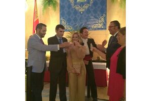 La alcaldesa de la ciudad, Ana Isabel Jiménez, ha recibido al hermano mayor, Joaquín Barello, y miembros de la Junta de Gobierno para hacerle entrega de este obsequio con motivo del 40 Aniversario de la Hermandad, y en agradecimiento a su labor
