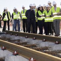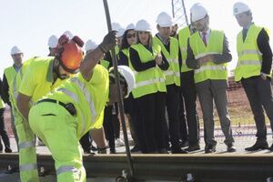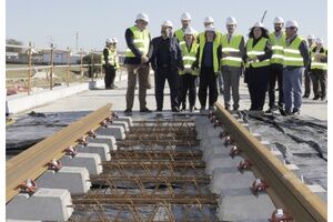 LA ALCALDESA ASISTE CON EL CONSEJERO A LA COLOCACION DE LAS TRAVIESAS Y CARRILES DE VÍA EN EL ÚLTIMO TRAMO DEL TRANVÍA DE ALCALÁ DE GUADAÍRA