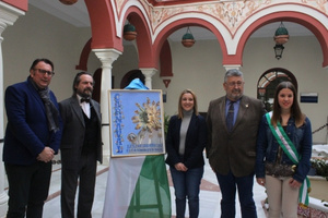 La alcaldesa de la ciudad, Ana Isabel Jiménez, ha recibido al hermano mayor, Joaquín Barello, y miembros de la Junta de Gobierno para hacerle entrega de este obsequio con motivo del 40 Aniversario de la Hermandad, y en agradecimiento a su labor