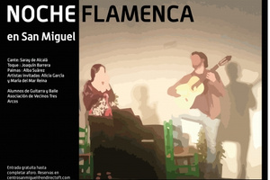 El sábado 24 el Centro San Miguel acoge una noche flamenca con jóvenes artistas locales con Saray de Alcalá al cante, Joaquín Barrera al toque y las palmas de Alba Suárez. Como artistas invitadas intervendrán Alicia García y María del Mar Reina, y la noche contará también con la actuación de las alumnas y alumnos de guitarra y flamenco de la Asociación de Vecinos Tres Arcos, del Barrio de San Miguel. Ambos espectáculos son gratuitos, siendo necesaria reserva previa a través del correo centrosanmiguel@endirectoft.com
