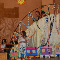 Los disfraces, complementos y atrezo, desde camisetas, complementos y decorado han sido confeccionados en el taller de manualidades y pintura.