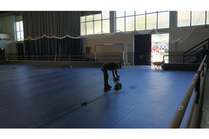 La segunda, a punto de finalizar y con un presupuesto de 47.689,19 euros, consiste en preparación de la solera base indicada en la actuación anterior mediante el lijado de resaltes y la aplicación de una mano de pasta alisadora para dejar la superficie completamente lista y apta para la colocación de un moderno pavimento deportivo de PVC