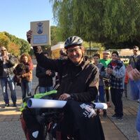 El profesor José M. Reina del Valle ha sido recibido por la alcaldesa y un grupo de familiares, amigos y alumnos en el Parque Centro poniendo fin a su gesta tras recorrer en bicicleta más de 33.000 km de Alaska a Tierra del Fuego.