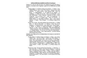 Consulta aquí en pdf recorridos, paradas y frecuencias. Se recuerda que, de acuerdo con el Consejo de Hermandades como en años anteriores y siguiendo el Plan Varal, el centro estará cortado al tráfico por seguridad y esplendor de las procesiones