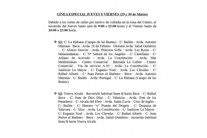 Sentido Alcalá de Guadaíra-Sevilla: Los servicios con hora de salida a las 18:25 y las 19:00 horas, no podrán realizar las mismas desde la calle Saturno, en su lugar lo harán desde la rotonda de Beca, así como realizar la salida del municipio por la Avda. 28 de febrero.
