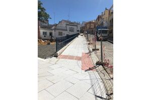 Se está pavimentando las áreas de terrizo, colocando muros de contención que vendrán a eliminar los taludes y ganar espacio al uso peatonal, además se están tratando las zonas ajardinadas y pavimentando el viario de fondo de saco que atraviesa la zona peatonal, recuperando así espacio para el peatón.