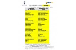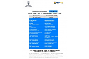 Dicho servicio estará disponible el miércoles desde las 21.00 h hasta las 04.00h de la madrugada, el jueves desde las 13.00 h a las 05.00 h de la madrugada, ampliándose el viernes y sábado hasta las 06.00 h de la madrugada y el domingo desde las 13.00 h finalizando a las 01.30 h de la madrugada.
