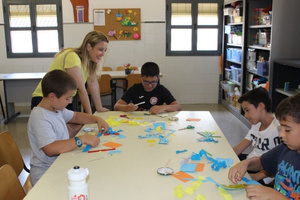 La alcaldesa ha visitado a los niños y niñas que se divierten desde julio en la Casa de la Cultura con los talleres de verano de la Universidad Popular.