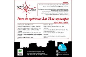 Las clases, de grupos muy reducidos, darán comienzo el 1 de octubre en el Centro San Miguel en horario de tarde de lunes a jueves. El profesorado de este primer curso de la Escuela destaca por su profesionalidad y amplia trayectoria, así como por su vinculación especial a Alcalá de Guadaíra. De esta forma los cursos de teatro serán impartidos por Edgardo Segura y David Fernández Troncoso y los de flamenco por la bailaora Eli Jara.