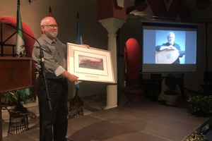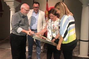 Finalmente y tras las palabras de reconocimiento, la alcaldesa en nombre del Ayuntamiento y en recuerdo de este acto, hizo entrega al homenajeado de una obra del pintor también alcalareño Manuel Domínguez Guerra (que próximamente expondrá en el Museo de Alcalá). Por su parte, Rivera Pecellín finalizó expresando su gratitud a cuantos habían hecho posible un encuentro como el que estaba viviendo y se mostró muy emocionado ya que en la nueva etapa de vida que ahora le toca descubrir, la música seguirá estando muy presente.
