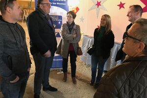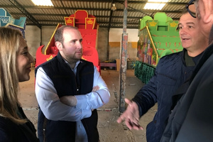 La alcaldesa de la ciudad, Ana Isabel Jiménez, ha visitado el taller donde la Cabalgata de Reyes Magos del Campo de las Beatas da los últimos retoques a las carrozas que desfilarán el domingo próximo por la mañana.