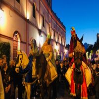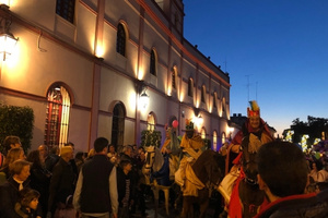 Desde las 18.30 horas de la tarde, una comitiva formada por los propios Heraldos Reales y una corte de beduinos ha partido con música y en pasacalles desde la Plaza del Duque por las céntricas calles Ntra. Sra. del Águila, La Plazuela y Mairena para llegar hasta la Plaza del Barrero.