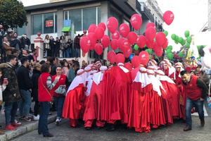 Fiesta en el centro de Alcalá ante la llegada de los Heraldos Reales.