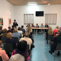 Tras la inauguración, los presentes participaron de una tertulia protagonizada por algunos de los concejales que han formado parte del Ayuntamiento en distintas épocas, entre ellos Paqui Olías y José Manuel Campos (PSOE), María del Carmen Rodríguez Hornillo (PP), Antonio Ballesteros (IU) y Fernando Zamora (PA).