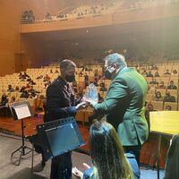 Tras el mismo, el Consejo General de Hermandades y Cofradías hacía entrega de tres placas en reconocimiento a la labor de la Banda de Música y su director, así como al magnífico trabajo del responsable técnico y todo el personal del Teatro Auditorio Riberas del Guadaíra.