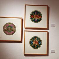La exposición se compone de 25 obras, tondos, en la que destaca la naturaleza y especialmente las flores: el hibiscus, la rosa, el nardo, el lirio… envueltas en espacios abstractos, geométricos, en la que tiene un gran peso el dibujo y se descubre un minucioso trabajo de método renacentista. Retrasada un año por la pandemia, la muestra, dedicada a su padre ‘In Memoriam’, incluye entre la colección un cuadro diferente, ‘Duelo’, realizado en el confinamiento.