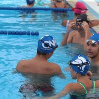 El buen ambiente deportivo y solidario se puede comprobar hoy en la Piscina de San Juan de Alcalá de Guadaíra, hasta donde se han desplazado nadadores de las más variadas procedencias, además de representantes del Gobierno y la Corporación municipal, entidades ciudadanas y conocidos deportistas que no han dudado en ponerse el bañador para lanzarse de cabeza y contribuir a nadar desde las Riberas del Guadaíra a la India.
