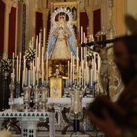 La Virgen cambia cada año de cuadrilla de costaleros, de forma que todas las hermandades de la ciudad puedan llevarla. Este año es el turno de la Hermandad del Soberano Poder.