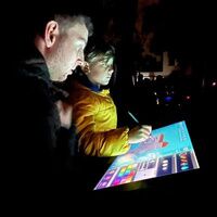 La cita comenzó con una explicación de la actividad por parte Jesús Azogue, quien desde pequeño sentía admiración por los paisajistas que recogían en su obra la belleza de los paisajes alcalareños. Reiteró su empeño por ‘pintar’ los molinos de rosa y no ha parado hasta conseguirlo valiéndose de un proyecto interactivo provisto de tecnología digital a través de una aplicación y una pantalla de dibujo WACOM dando lugar a una proyección mapeada con fondo musical y el propio sonido de la naturaleza.
