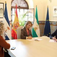 El Ayuntamiento ha suscrito un convenio con la empresa Clece para colaborar en eventos de contenido social y fomentar el empleo en el municipio. La alcaldesa Ana Isabel Jiménez y el representante del grupo multiservicio, Ángel Fernández, han cerrado un acuerdo que dará trabajo a un centenar de alcalareñas y alcalareños formados en el sector de la asistencia sociosanitaria. En su mayor parte, cubrirán las sustituciones y vacaciones de profesionales destacados en el Servicio de Ayuda a Domicilio, que en Alcalá de Guadaíra atiende a 820 mayores y personas dependientes.