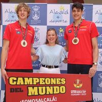 La alcaldesa de Alcalá de Guadaíra, Ana Isabel Jiménez ha recibido a los jugadores en el salón de plenos del Ayuntamiento a los que ha felicitado y les ha dicho que “nos habéis regalado una alegría inmensa al obtener la medalla de oro en este torneo mundial. Un orgullo doble, algo histórico para Alcalá el que sean dos los alcalareños que hayan logrado al unísono estar en lo más alto del deporte”.